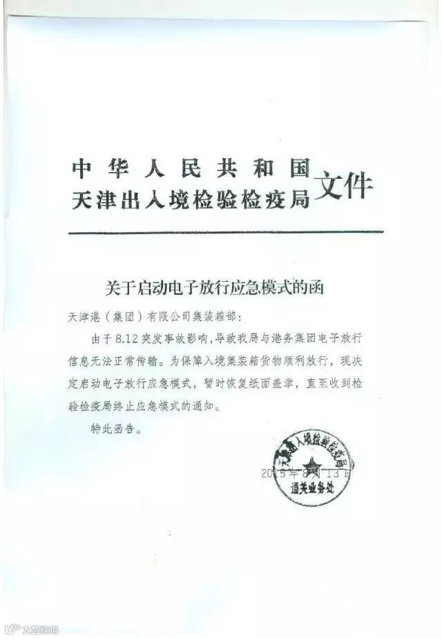 目前所有出口危险品的货物,在没有天津港新的通知下达后,暂时不再接载,请各位注意!