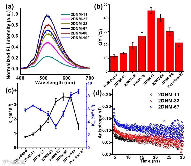 图1. 类肽的修饰和二维类肽纳米材料自组装以及荧光性能