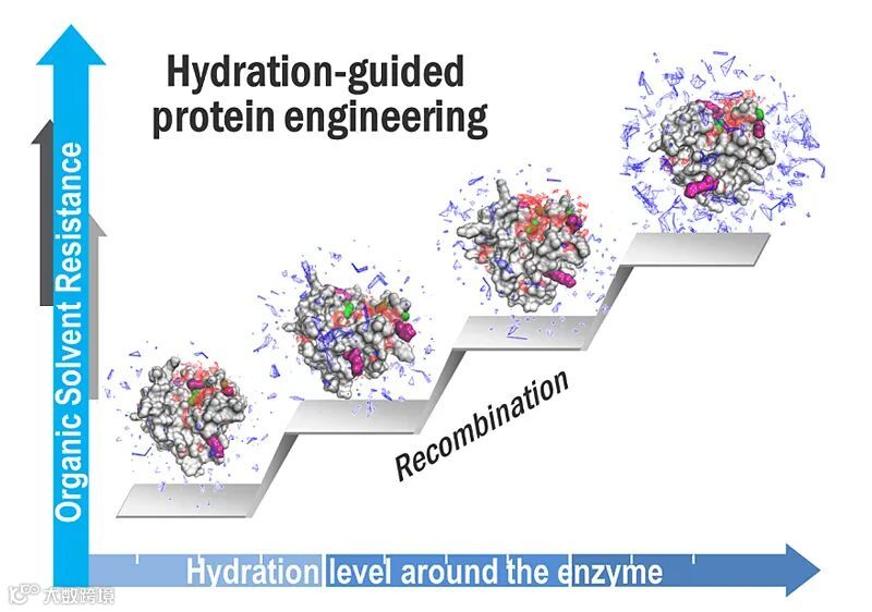 图1. 水化层指导的蛋白质工程以改造酶的有机溶剂耐受性。图片来源:ACS Catal.