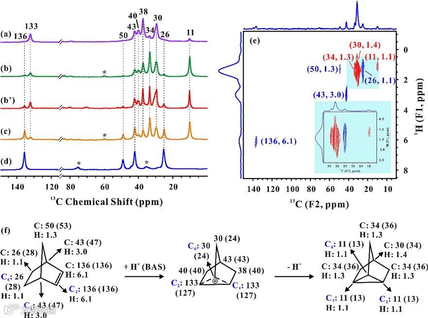 图3. 固体核磁共振实验表征分子筛中的降冰片基碳正离子