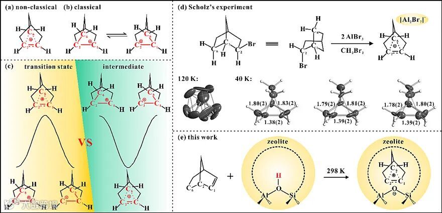 图1. 降冰片基碳正离子存在形式的经典和非经典之争