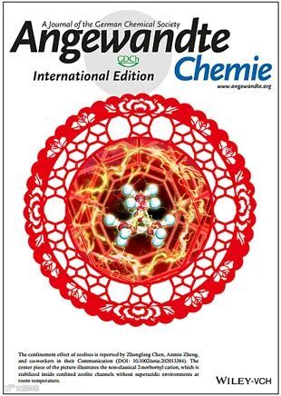 碳正离子作为重要的反应中间体,在催化反应中起到了重要的作用。其中,降冰片基碳正离子作为最著名的碳正离子,其存在形式(经典和非经典)的争议存在了近百年。直到2013年,Scholz等人(Science, 2013, 341, 62-64.)利用超强酸环境下在超低温40 K下利用单晶X射线衍射观测到非经典碳正离子的晶体结构,才结束了这一争议。然而,超低温的极端条件使得碳正离子难以得到更深入的研究。因此,在室温下增强降冰片基碳正离子的稳定性并进一步观测到其结构仍然是非常大的挑战。分子筛是常用的固体酸结构催化材料,广泛地应用在甲醇制烯烃和二甲醚羰基化反应中,其特有的孔道限域结构可以稳定住多甲基苯碳和环戊二烯正离子。基于此,中国科学院精密测量科学与技术创新研究院的郑安民研究员团队和美国波多黎各大学的陈中方教授合作,利用从头算分子动力学和固体核磁实验相结合的方法,原位动态地跟踪了室温下分子筛限域环境中降冰片基碳正离子的存在形式。该工作作为热点文章和封面文章(back cover)发表在Angewandte Chemie International Edition。