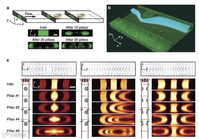 微流控是一门涉及化学、流体力学、材料科学和生物医学的新兴交叉学科。微流控技术在生物检测、化学分析和乳液合成等领域都有很好的应用前景。我们能看到目前发表在高档次期刊上的微流控文章中,许多都在文章中加入了仿真模拟部分,充分发挥仿真模拟的优势能够极大的帮助我们的研究工作。例如以下发表在Nature Communications 和 Nano Letters 上的文章都利用仿真模拟展示了微流通道中的流场分布和通过模拟研究了一些相关因素对流动的影响,一些难以通过实验的到的信息我们都可以通过模拟很好地展示出来。