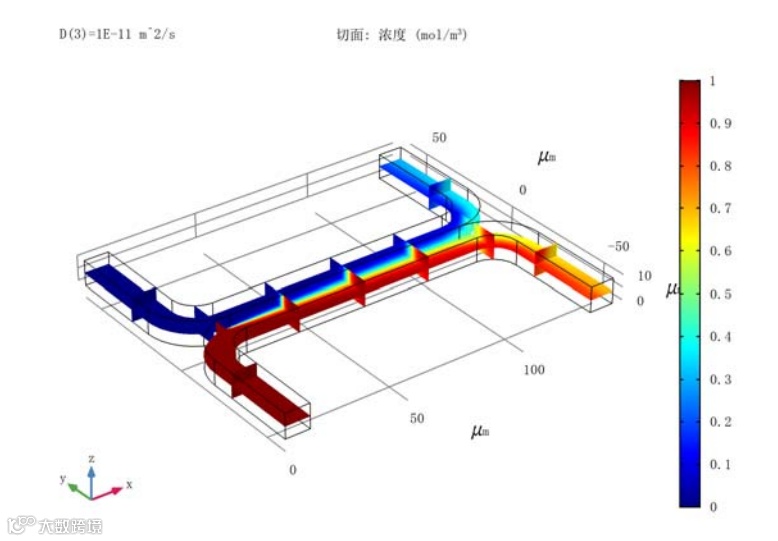 微流体通道中物质混合模拟