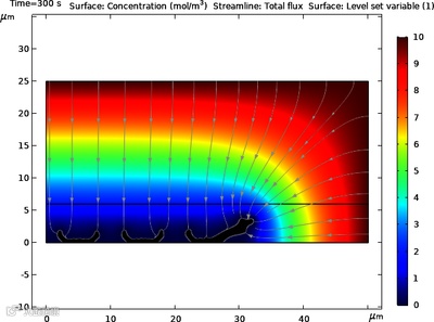 ▶ 电池及电化学反应中电流密度分布和物质浓度分布的模拟光;