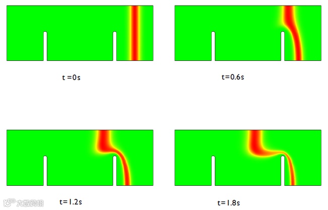 分子扩散、对流、电渗作用下的浓度场变化