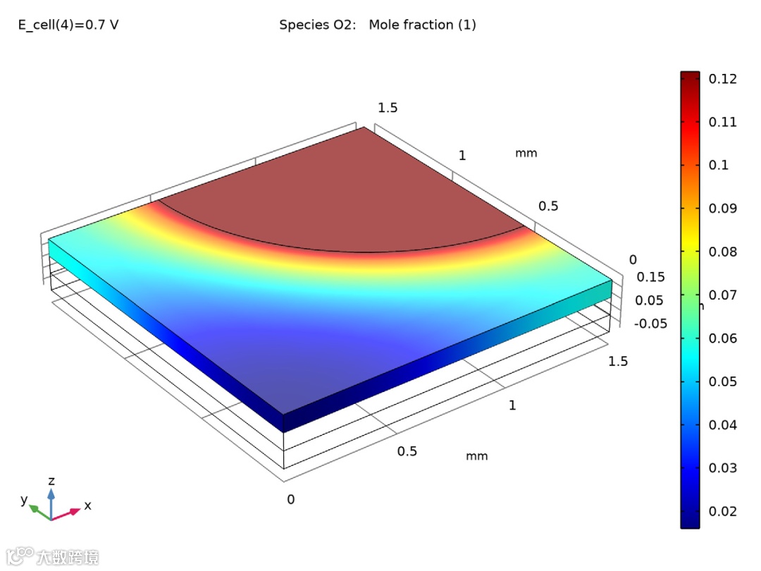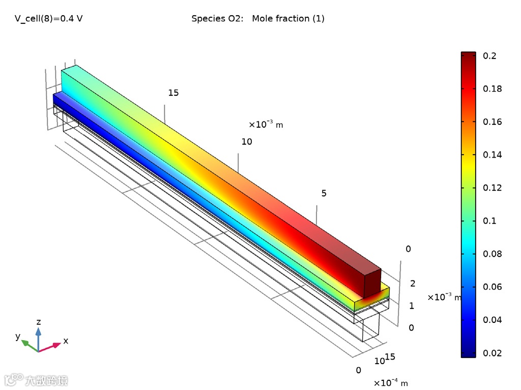 氢氧燃料电池:阴极氧传输模拟(阴极氧气浓度分布及电化学反应消耗)