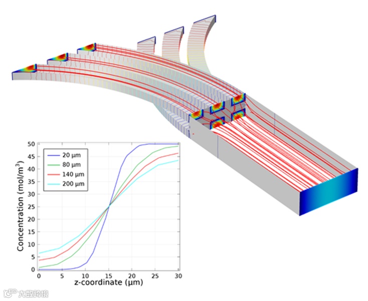▶ 微反应器件中的流场计算,自定义数学模块的应用;