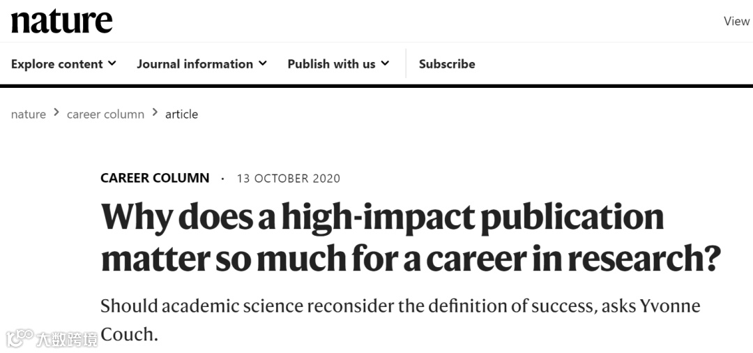 如果一位科学家发表于三大顶刊的几篇文章处于中间位置。最大的一篇论文发表于影响因子超过35的顶刊期刊上,一年后,这位科学家在一份影响因子略低于7的期刊上也发表了一篇论文。大论文被引用不到40次,小论文被引用超过100次,那么哪篇论文含金量更高呢?可是到了评审青年科研工作者基金或更高职位时,三大顶刊中发表的论文还是比申请人简历上的其它论文更重要。