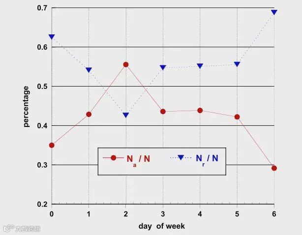 研究人员对化学领域 JSCS 杂志 2013 年 1 月 1 日到 2014 年 12 月 31 日两年间的 596 篇投稿论文进行了研究,通过比照投稿日期与命中率之间的关系,发现了神奇的「周二-周三」效应:即周三的论文投稿数最多,而周二投稿的论文接受率则最高。