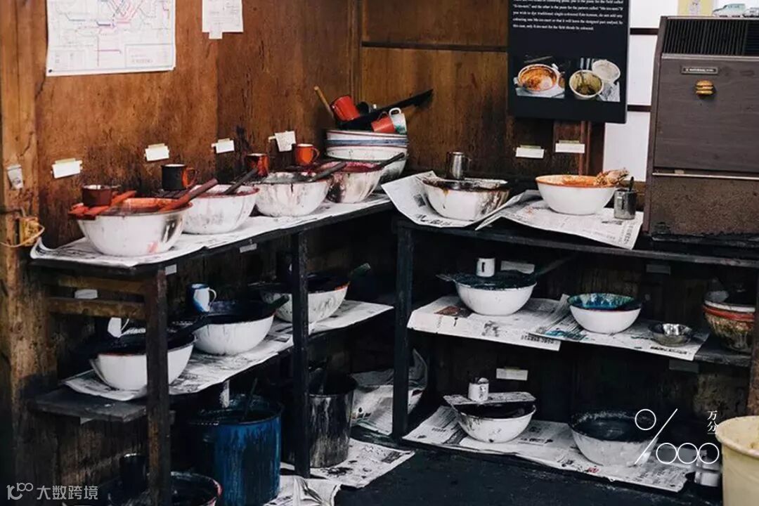 布料的颜色调制也是一门精细活儿,匠人们根据订单要求手工调制颜色。因为需要协调同一块布料在荧光灯下的颜色、在太阳光下的颜色、放在地上的颜色的平衡感,所以要经过许多计算和调整。