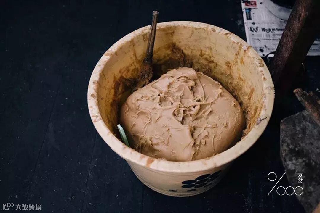 在米糠和糯米粉中加盐混合,再锅里沸腾两次,混入化学染料制成的彩色浆糊。