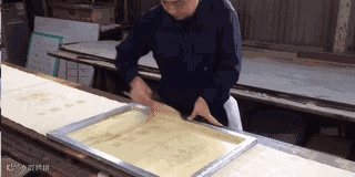 将白布铺在长板架上,在上面覆以纸型,用刮铲将浓浓的彩色浆糊涂在布料上,刷了浆糊的部分形成独特的飞白小纹花样,12米长的纯白布料,可用20厘米左右的纸型依次准确无误的刷上浆糊,由于花纹精细不易吻合,只有熟练的工匠才能顺利完成。