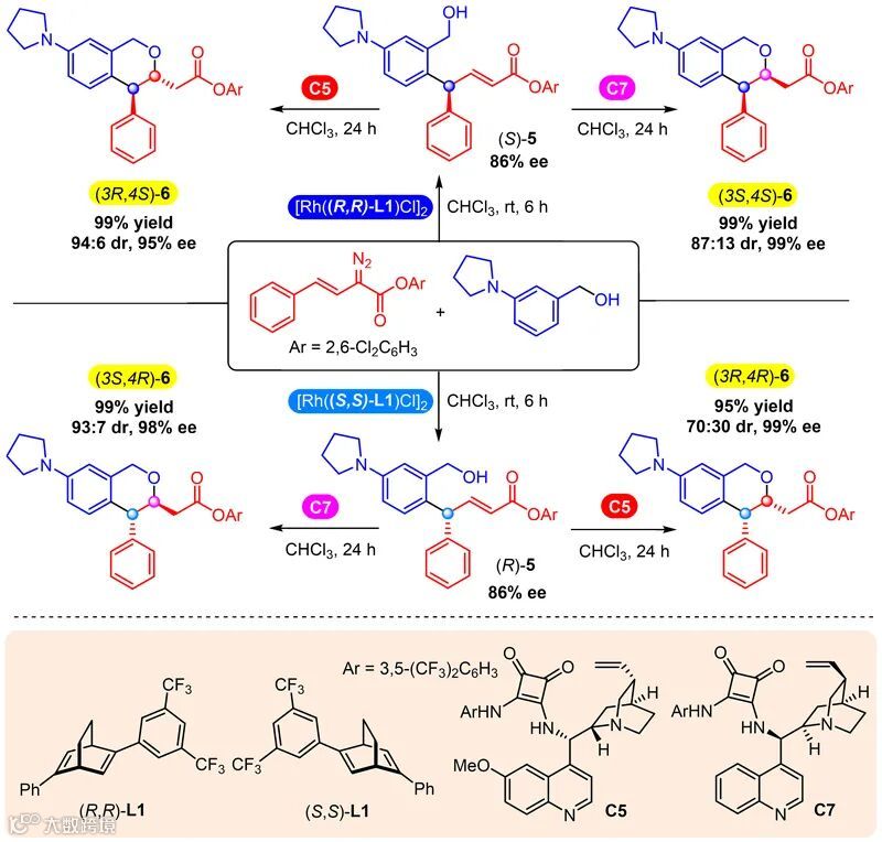 图4. 手性3,4-二取代异色满化合物的的立体发散性合成