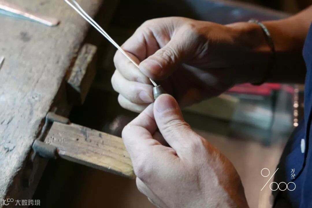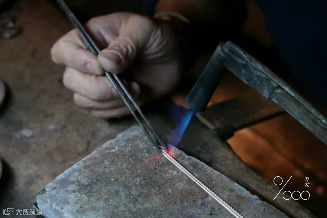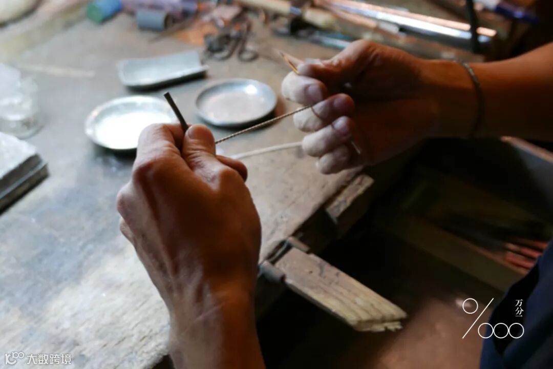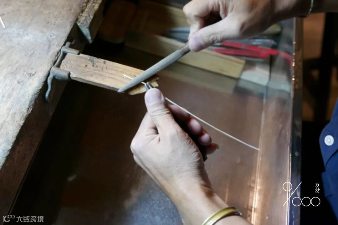 ▲选好银线后,用磨刀将金属磨细磨亮