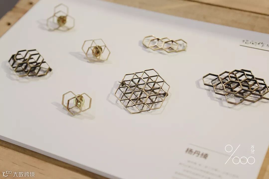 ▲「指间作物」胸针展上,手艺人杨丹绮的金工胸针作品