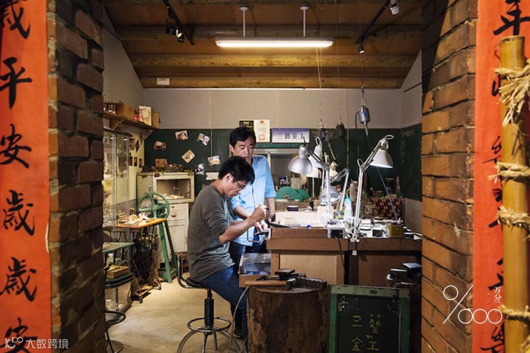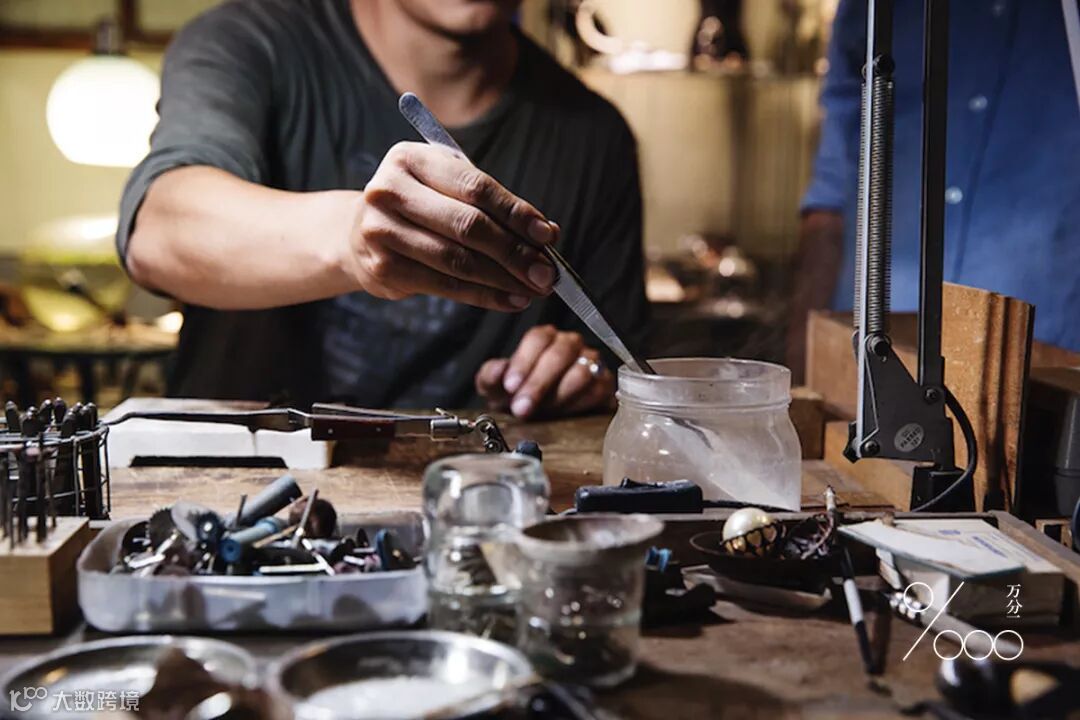 他手上的小小伤口,衬着工作台上轻轻打下的柔黄色灯光,一旁的金工饰品们一个一个都在发亮——温清隆曾经血色的伤口,最终成就了一件件精致优雅的金工艺术。