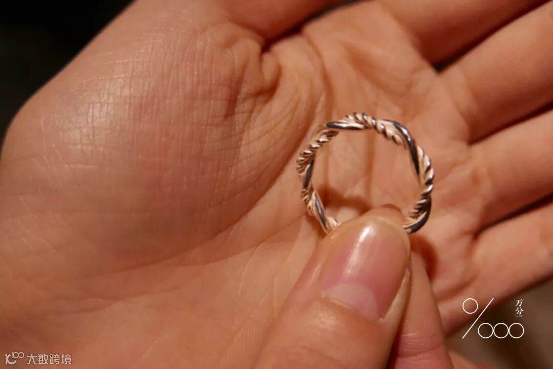 ▲细看便会发现,刚完成的纯银戒指是白色的