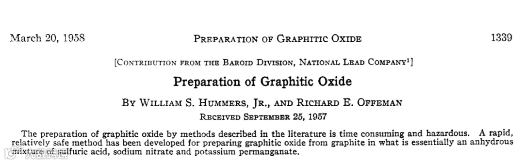 更有趣的是,这篇以Article形式发表的文章仅仅只有一页!文章的两位作者William S. Hummers Jr. 和 Richarh E. Offeman 在JACS上只发表了这一篇文章,却足以“笑傲江湖”。