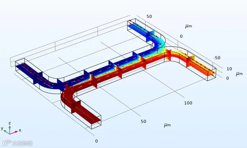 ▶ 微反应器件中的流场计算,自定义数学模块的应用;