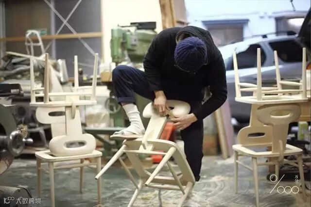 竹俣喜欢将一块块木头打磨拼接成家具的过程