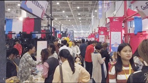 我们,历时3天4晚,用日系风十足的原木板、棉麻布帘、霓虹彩灯……搭建了5m高,将近4000㎡的展区。