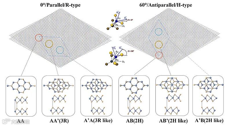 图1. 双层TMDs类材料的堆垛构型图。图片来源: