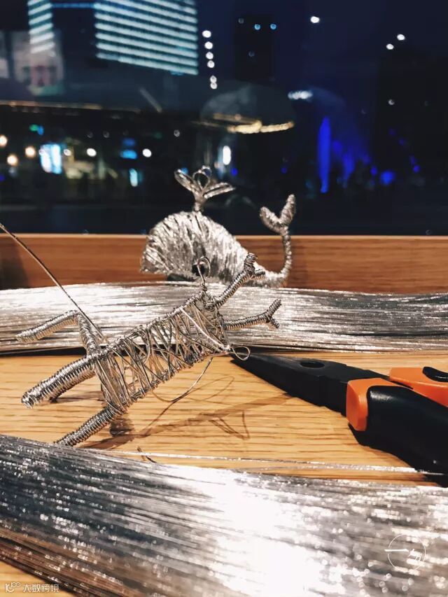 一把钳子,无数根“丝网花铁丝”,这就是Alice用到的所有材料。然而,想要把它们变成眼前这些富有金属光泽的可爱动物造型,却特别“费手”。每一根铁丝都要先拧成麻花状,才能用来构建骨架;每一个造型都要拗出平面的“剪影”骨架,才能继续延展出立体的造型。