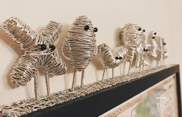 “虽然这总的来说是一件累手的事情,但我还是不愿意放弃这个爱好。粗略算了下已经做过上千只铁丝玩偶了,想想现在他们静静的摆在世界各个角落的书架上,忽然有一种满足感。现在按着时间线放一下6年间我做过的铁丝玩偶,大概能从中看到成长。"