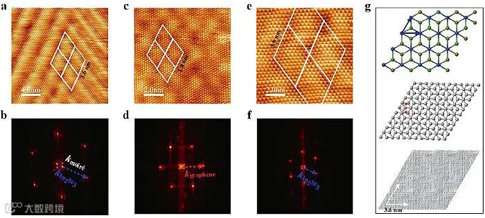值得关注的是,在x = 1的时候,该团队发现了一种新的石墨烯异质结体系,In2Se3/Graphene异质结体系。众所周知,基于石墨烯的异质结构因其众多新奇的量子物理特性,引起了凝聚态物理与材料科学的广泛关注。目前,在此领域人们研究最多的超晶格体系是Graphene/hBN异质结和转角石墨烯(TBG)。其中尤其是魔角石墨烯中存在关联绝缘态和非常规超导态,使该领域重新成为了研究的热点。