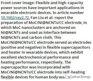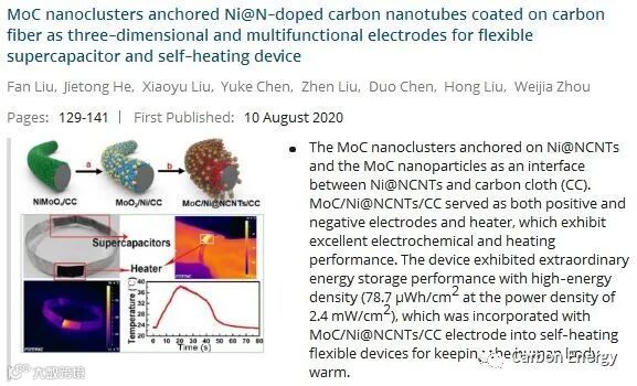 MoC/Ni@NCNTs/CC作为三维多功能电极运用于柔性超级电容器和自热装置