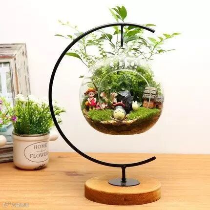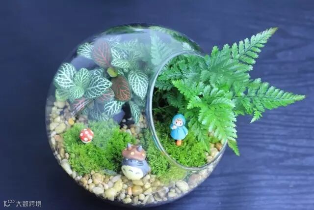 玻璃微景观是将苔藓、多肉等植物,加上各种篱笆、砂石、可爱的卡通人物、动物装进一个瓶子里,妙趣横生的场景和梦幻的童话世界就完成啦。