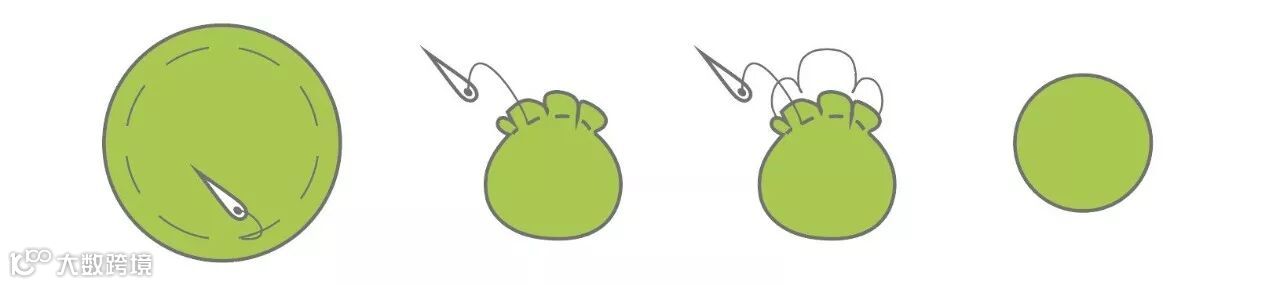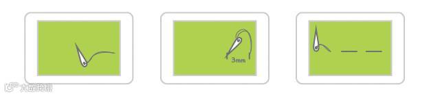 平针缝 用布料缝制或布料拼接。针一上一下平顺的缝合,针脚间距约3mm。