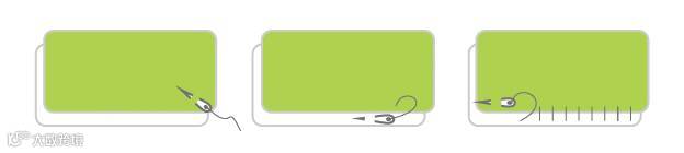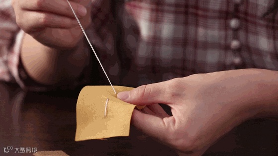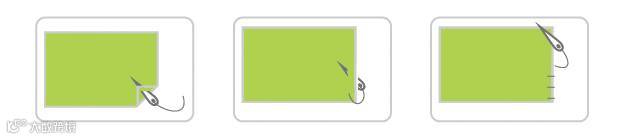 藏针缝 用于缝合翻口和部件组合。入针的位置要垂直于前一针出的位置,针距不要太大,稍微紧线会更加美观。