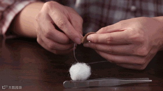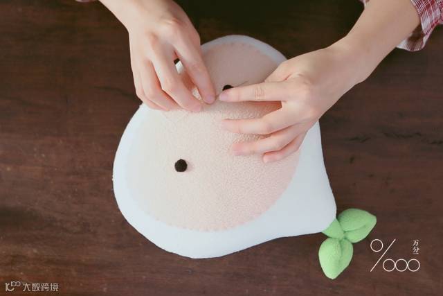 贴布缝 用于表情的缝制,将贴布固定在底布上。落针时针垂直缝入,且落在贴布的边缘。