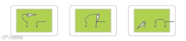 回针法 用于表情的缝制。A点出针后,回B点入针,从C点出针,再回A点入针,依次循环,缝制完是连续不断的缝线。