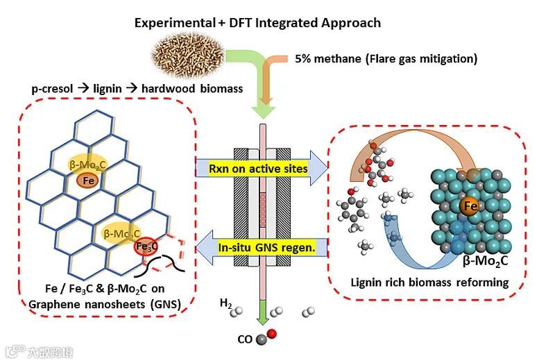 Graphene-Supported Fe/Ni, β-Mo2C Nanoparticles: Experimental and DFT Integrated Approach to Catalyst Development for Synergistic Hydrogen Production through Lignin-Rich Biomass Reforming and Reduced Shale Gas Flaring