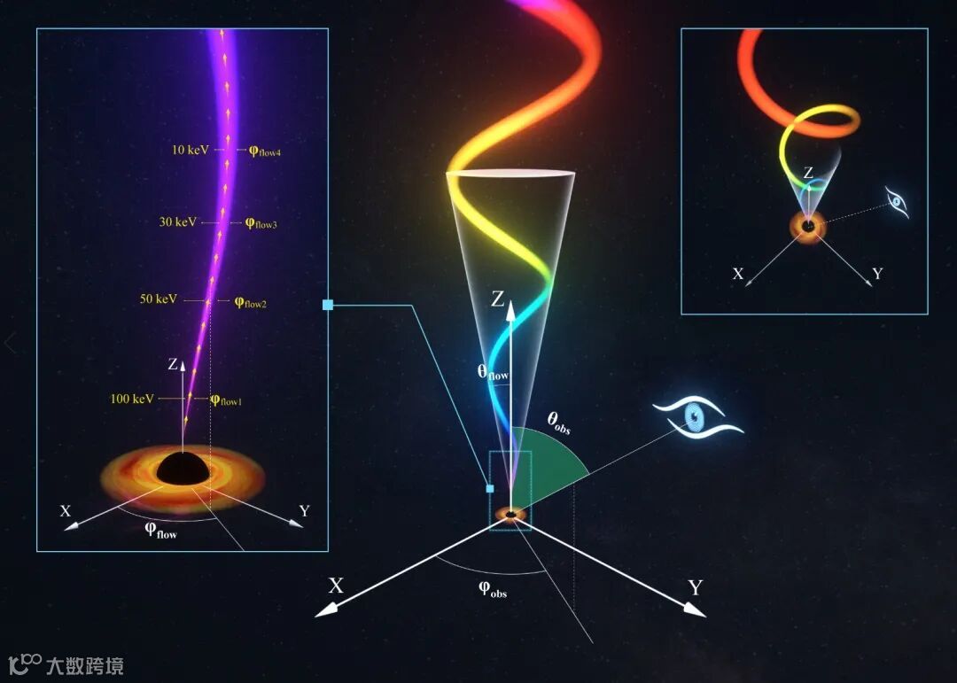 国际著名期刊Nature Astronomy在线发表了慧眼(HXMT)卫星最新观测结果:在高于200千电子伏特(keV)的能段发现了黑洞双星系统的低频准周期振荡,这是迄今为止发现的能量最高的低频QPO现象。研究表明,其起源于黑洞视界附近的相对论喷流(向外高速运动的等离子体流)的进动,为解决一直以来存在争议的低频QPO物理起源问题提供了重要依据。 中科幻彩有幸为其成果设计制作了演示视频动画、艺术呈现图以及文章插图,该动画在央视新闻频道播出。