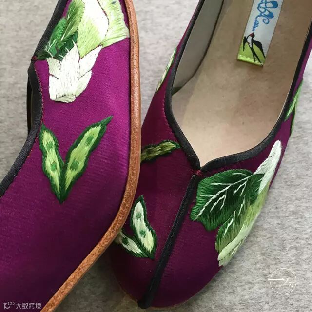 Denise如是形容Suzhou Cobblers。除了体现在做绣花鞋这件事上,体现在创意上,这三个词汇更多地凝练在制作工艺上——纯手工刺绣。