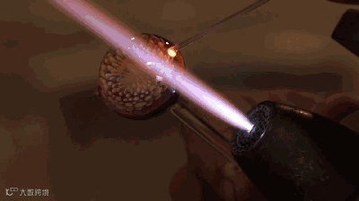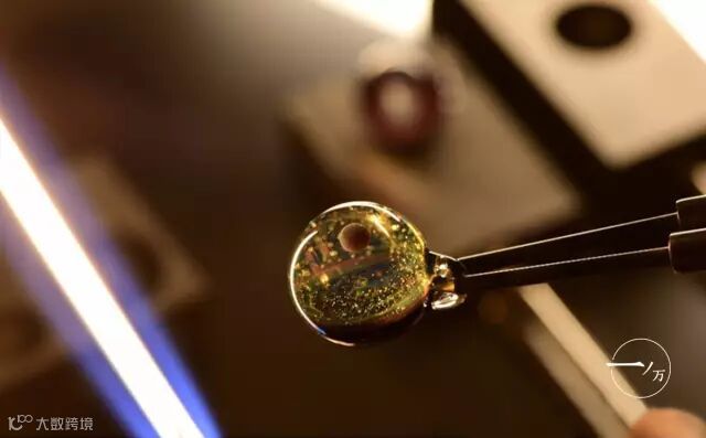 ▲ 宇宙玻璃在制作过程中,必须用两千多度的高温融化玻璃,通过特定手法塑形,并加以金粉、银粉等材料进行点缀。期间玻璃的形状是不规则的,职人在制作过程中也必须保持温度、湿度等因素的稳定。