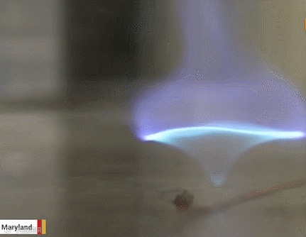 除了传统的明黄色火焰,科学家们也在研究新的火焰状态。马里兰大学的科学家发现了一种由传统的黄色火焰旋涡(fire whirl)进化而来的蓝色火焰旋涡(blue whirl),燃烧更彻底,效率更高,几乎不会产生常规燃烧常见的副产物烟黑,称得上是清洁型燃烧(PNAS, 2016, 113, 9457,点击阅读详细)。