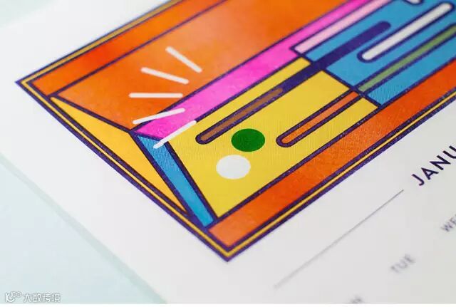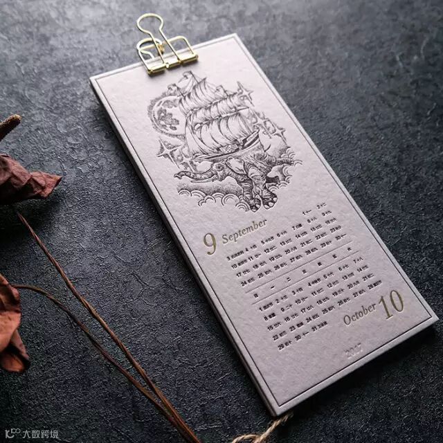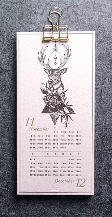 这款由‘梧桐印记’ letterpress、文创纸品牌‘Paper Paper纸纸’,以及插画师谢驭飞三方合作的TATTOO 2017月历(挂历版)共6张月历卡,采用letterpress活版印刷工艺与烫金工艺制作。