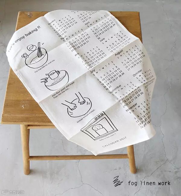 印有2017年历的100%天然亚麻餐布是 Fog Linen Work 每年冬季的限定产品,邀请多位设计师共同设计完成。7款可选,自用或作为圣诞贺礼宜。