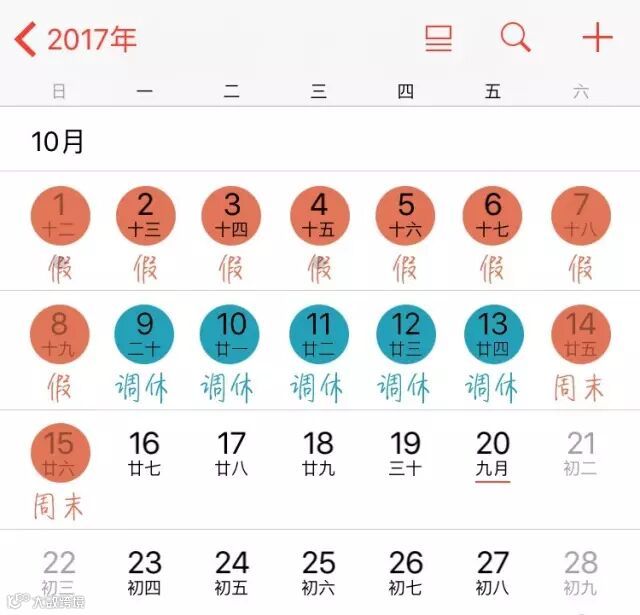 10月9-13调休5天,连休15天