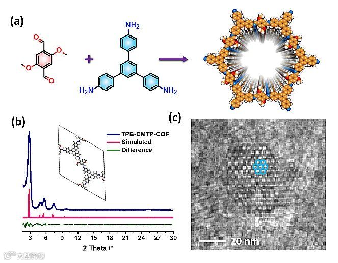 图2. TPB-DMTP-COF的合成及表征