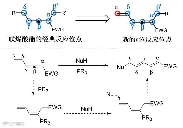 , 433)。这些报道说明,通过新的联烯酸酯底物设计,可以进一步发现新的反应位点,发展新的膦催化反应模式,为有机合成提供新的合成平台。