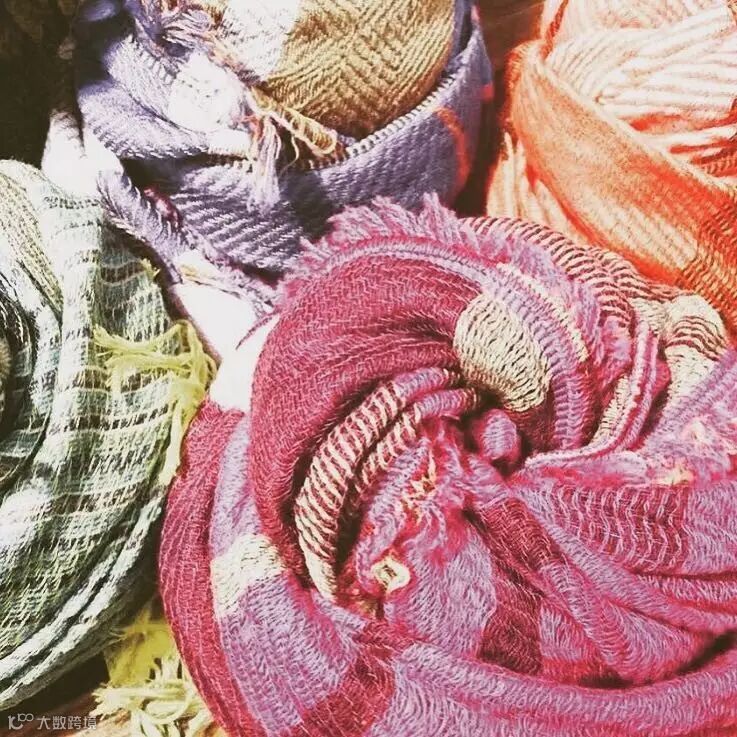 放眼望去,一片鲜艳、跳脱却又协调的围巾与披肩