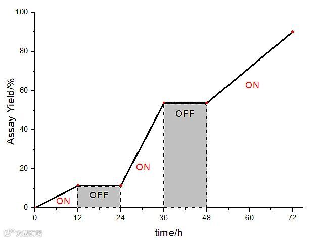 转化率随时间变化,标准条件(左)及添加产物3(右)。图片来源:Nat. Commun.