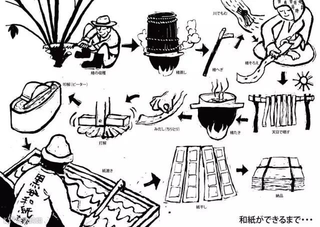 ▲Hatano Wataru绘制的黑谷和纸制作流程