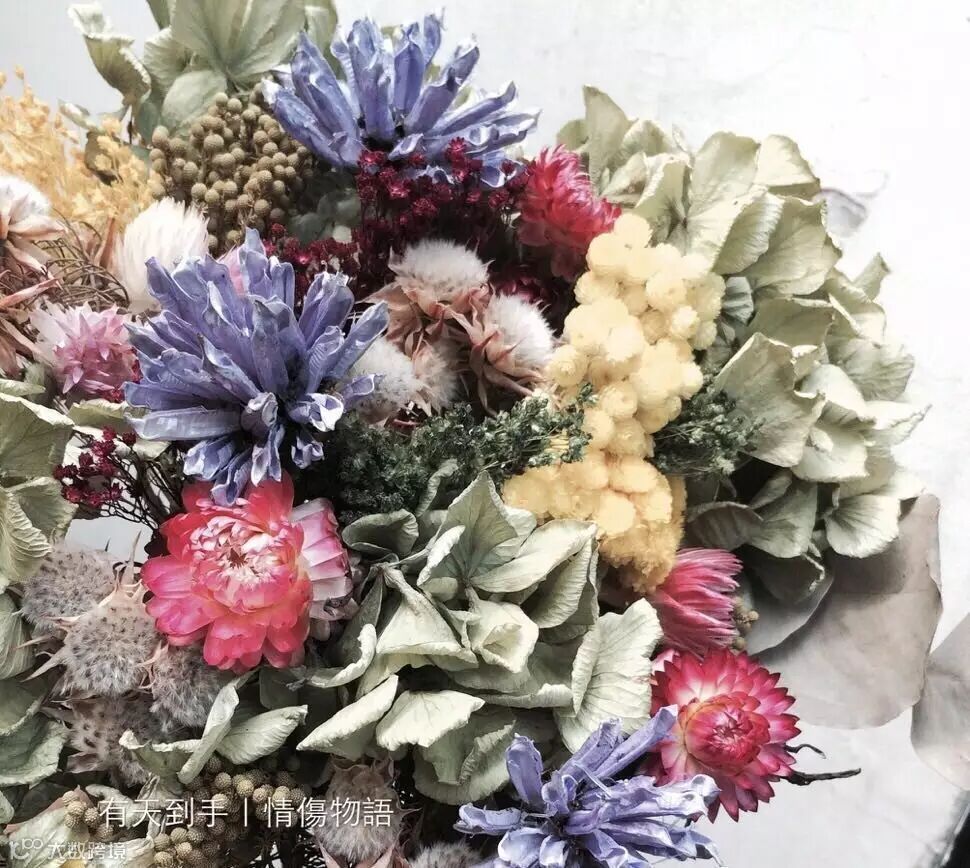 而做出的干花作为一份花礼